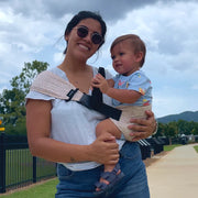 Todas las mamás conocen el clásico porteo en la cadera. Funciona como una ayuda para cargar,quitando el peso de los brazos, la espalda y la cadera, y colocándolo en el portabebés.